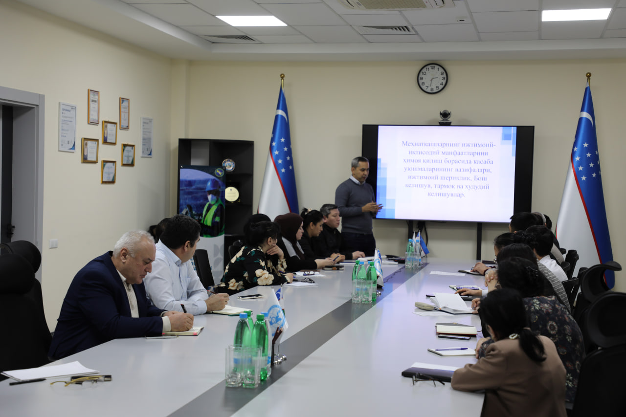 Shuningdek, ishchi-xodimlarning ijtimoiy-iqtisodiy manfaatlarini himoya qilishda ish beruvchi bilan ijtimoiy sheriklikni yo‘lga qo‘yish, jamoa shartnomalarini qabul qilish va ularning bajarilishi yuzasidan mehnat jamoalarida muhokama qilish tartibi, 1-TI va 1-JSH statistik hisobot shakllarini to‘ldirish masalalari atroflicha ko‘rib chiqildi.